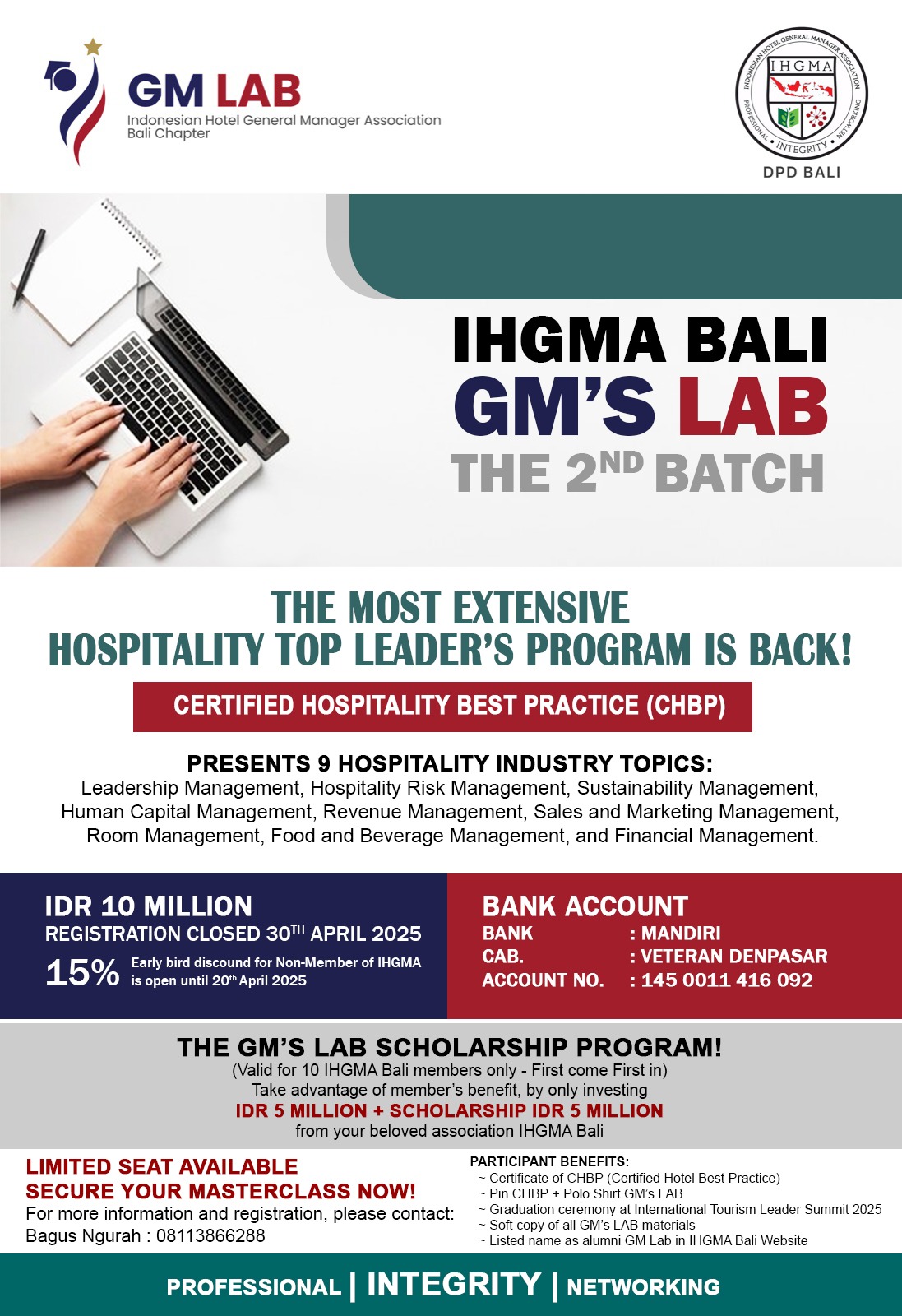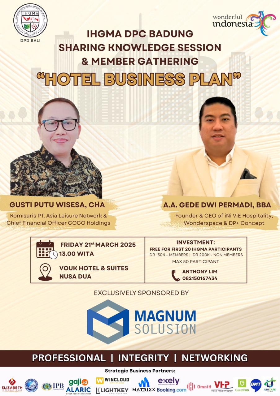« All Events Sharing Knowledge Session & Member Gathering – IHGMA DPC Badung March 21, 2025 @ 1:00 pm REGISTER NOW Days Hours Minutes Seconds “Hotel Business Plan” Sharing knowledge by the expert. Vouk Hotel & Suites – Nusa Dua, Bali Add to calendar Google Calendar iCalendar Outlook 365 Outlook Live Days Hours Minutes Seconds […]